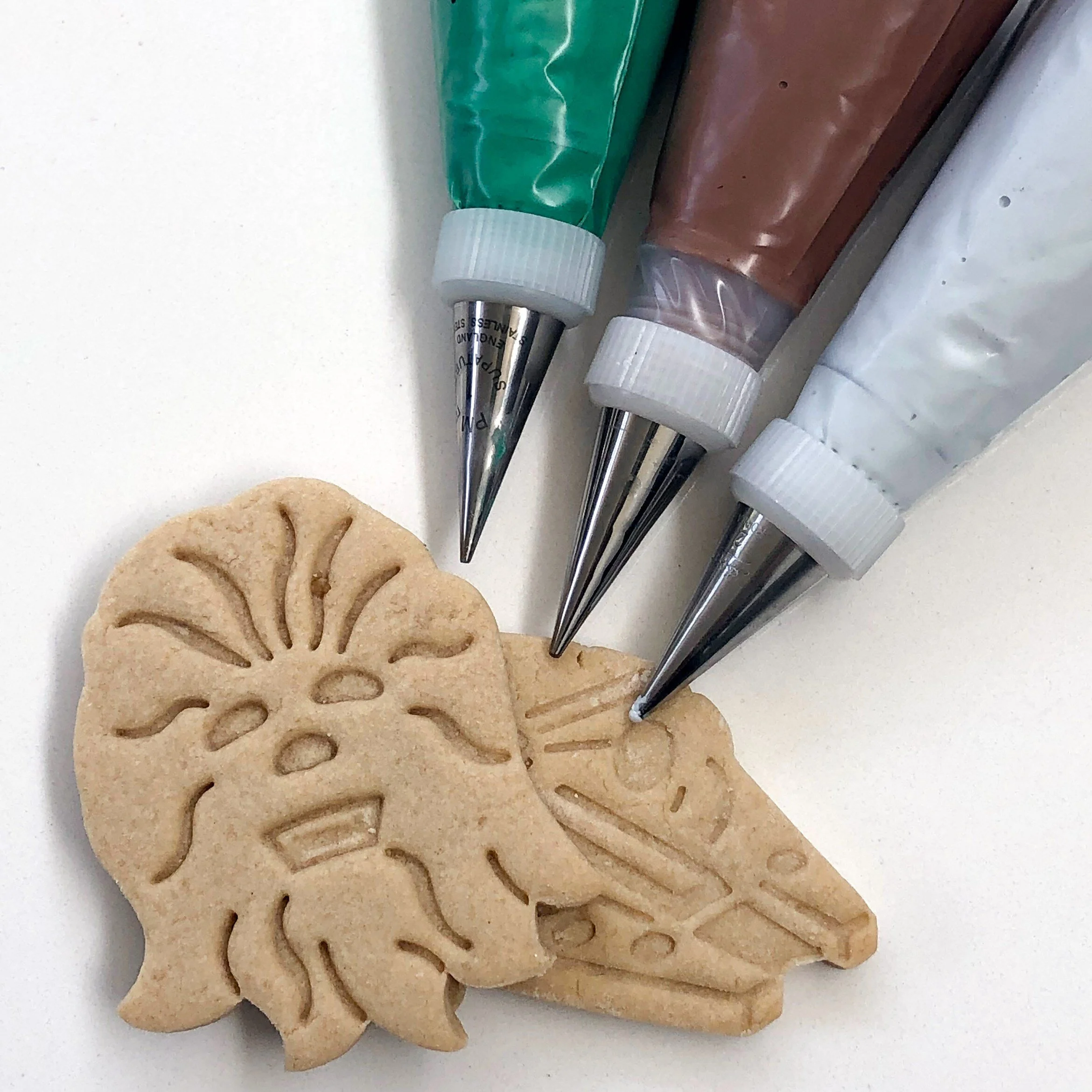 Is there a better occasion to give my new Star Wars theme stamped cutters their first spin? Stamped cutters can be finicky, but if you dip them in flour before each and every cut your dough should release more easily. If your cutters aren’t holding their image or shape during baking, try chilling them in the freezer for 5 – 7 minutes prior to baking.